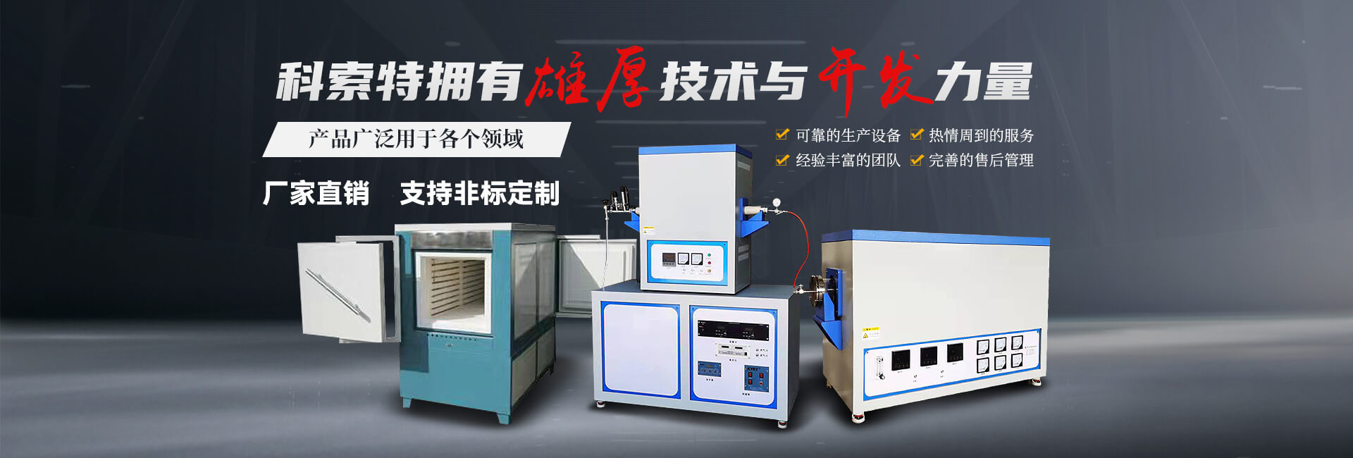 • 專注從事實驗室高溫設備和生產設備的研制。主要產品有:實驗爐、管式爐、升降爐、馬弗爐、真空爐、箱式爐、燒結爐、退火爐、玻璃熔塊爐、井式爐、熱震爐、快速升溫電爐等產品